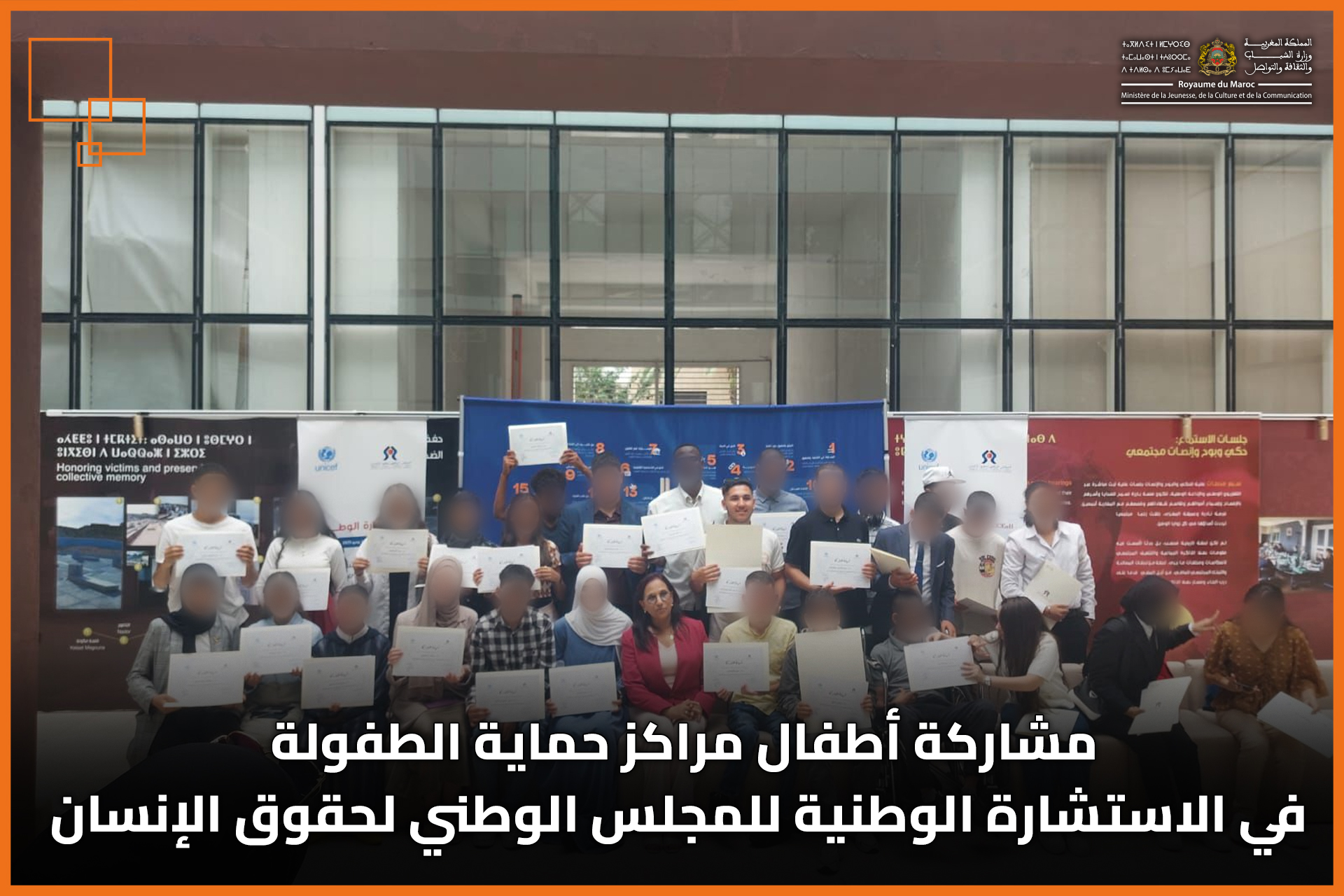 استشارة وطنية نظمها المجلس الوطني لحقوق الإنسان بمشاركة أطفال من مراكز حماية الطفولة، لتمكينهم من التعبير عن آرائهم والمساهمة في تحسين أوضاعهم، تجسيدًا لحقهم في المشاركة وترسيخًا لمقاربات تشاركية في قضايا الطفولة.