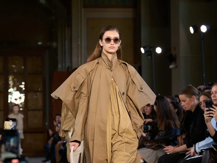 المجموعة قدّمت باقة أنيقة من الإطلالات الرسمية الملائمة لأجواء العمل، فيما جاءت لوحة الألوان لتعزز هذا الطابع، مع اعتماد النغمات الترابية كأساس. لفتت الأنظار الإطلالات الافتتاحية المظللة بتدرجات الجملي، وتألقت التصاميم الفضفاضة باللون الأبيض الكريمي لتمنح إحساساً بالانسيابية. أما الأسود، فقد أتى كفاصل أنيق مهّد الطريق نحو تشكيلة راقية من البني الكاكاو والرمادي والكاكي الداكن، في انسجام يكرّس حضور المجموعة كأحد أبرز محطات هذا الموسم.