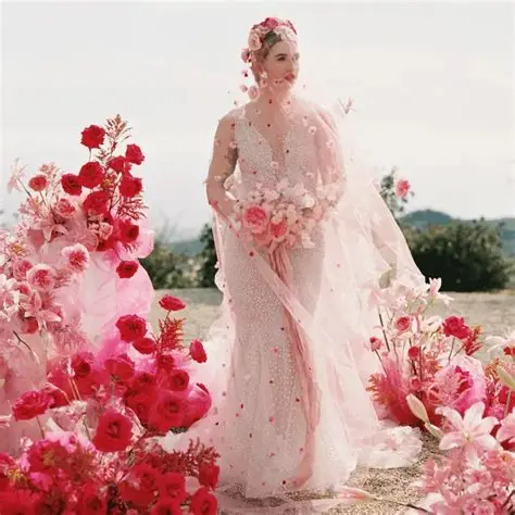 فستان الزفاف في شهر أكتوبر يكتسي ظلال وردية